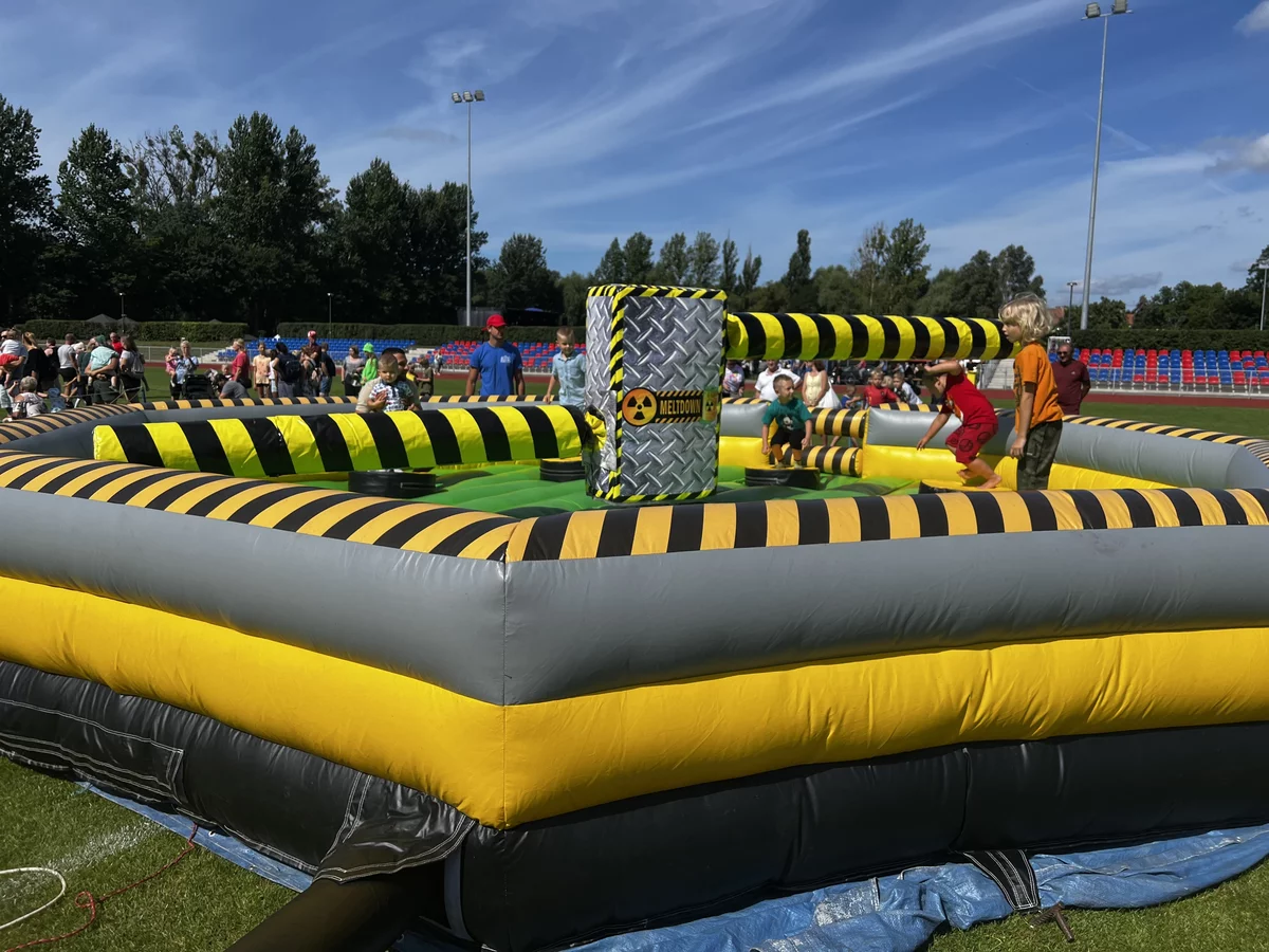 Na wyznaczonym przez Państwa placu rozstawimy sportową wioskę z nadmuchiwanymi urządzeniami sprawnościowymi gdzie rozłożymy stanowiskami na których zorganizujemy konkurencje dla dużych i małych uczestników pikniku. Przygotujemy kącik wiedzy o sporcie.